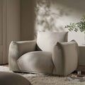 Load image into Gallery viewer, Beige armchair in a modern living room setting with a plant and coffee table.